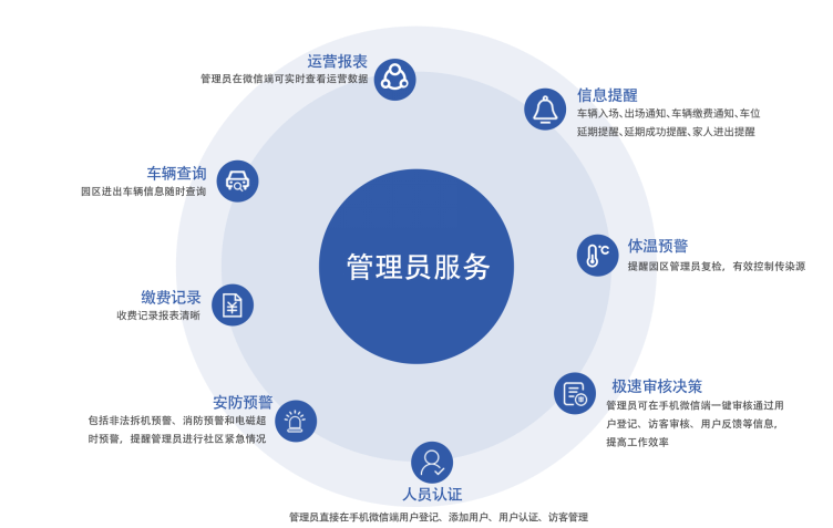 支持在公眾號進行住戶、訪客、車輛等進行查詢、審核、管理,功能豐富強大。